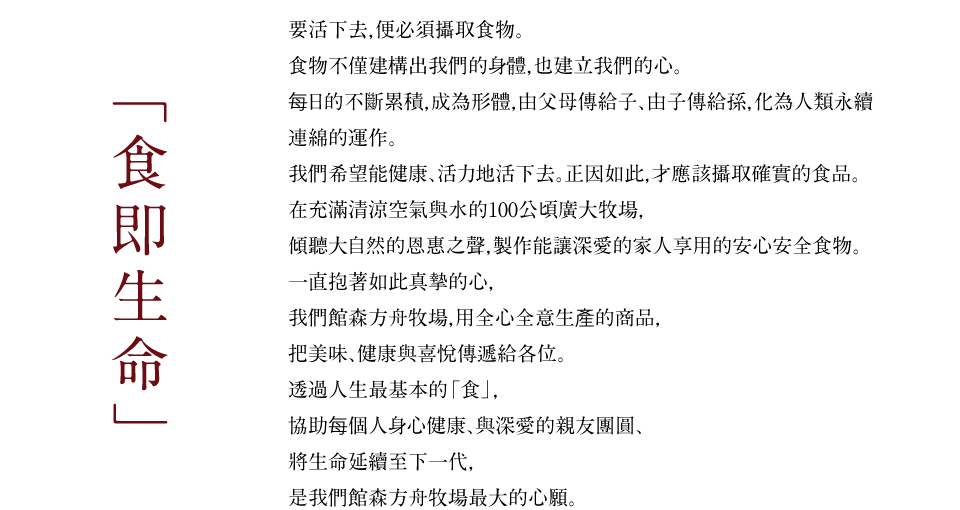 我們與顧客交流的基礎,是對自己的生產品負責。我們不斷精進努力,以期把「生產的農業」提升為「賞味的農業」「享受的農業」,使它成為生產者與消費者彼此分享感動,下個世代的年輕人才能懷抱夢想接手的魅力產業。