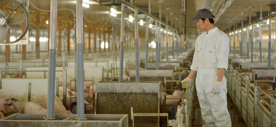 我自昭和52年(1977年)进入公司以来,便以公司理念的“食即生命”为座右铭,全心专注生产安全、安心又美味的猪肉。