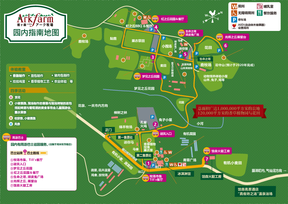 周游巴士带您畅游方圆约100公顷的巨大牧场。沿途会有工作人员介绍馆森方舟牧场的代表性景点。
