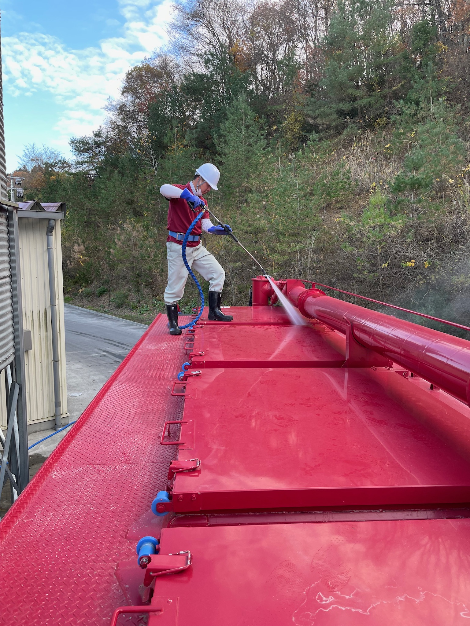 Therefore, there is work that is important to prevent falls and falls accidents. It is to wash the top of the tank with a high pressure washer.
