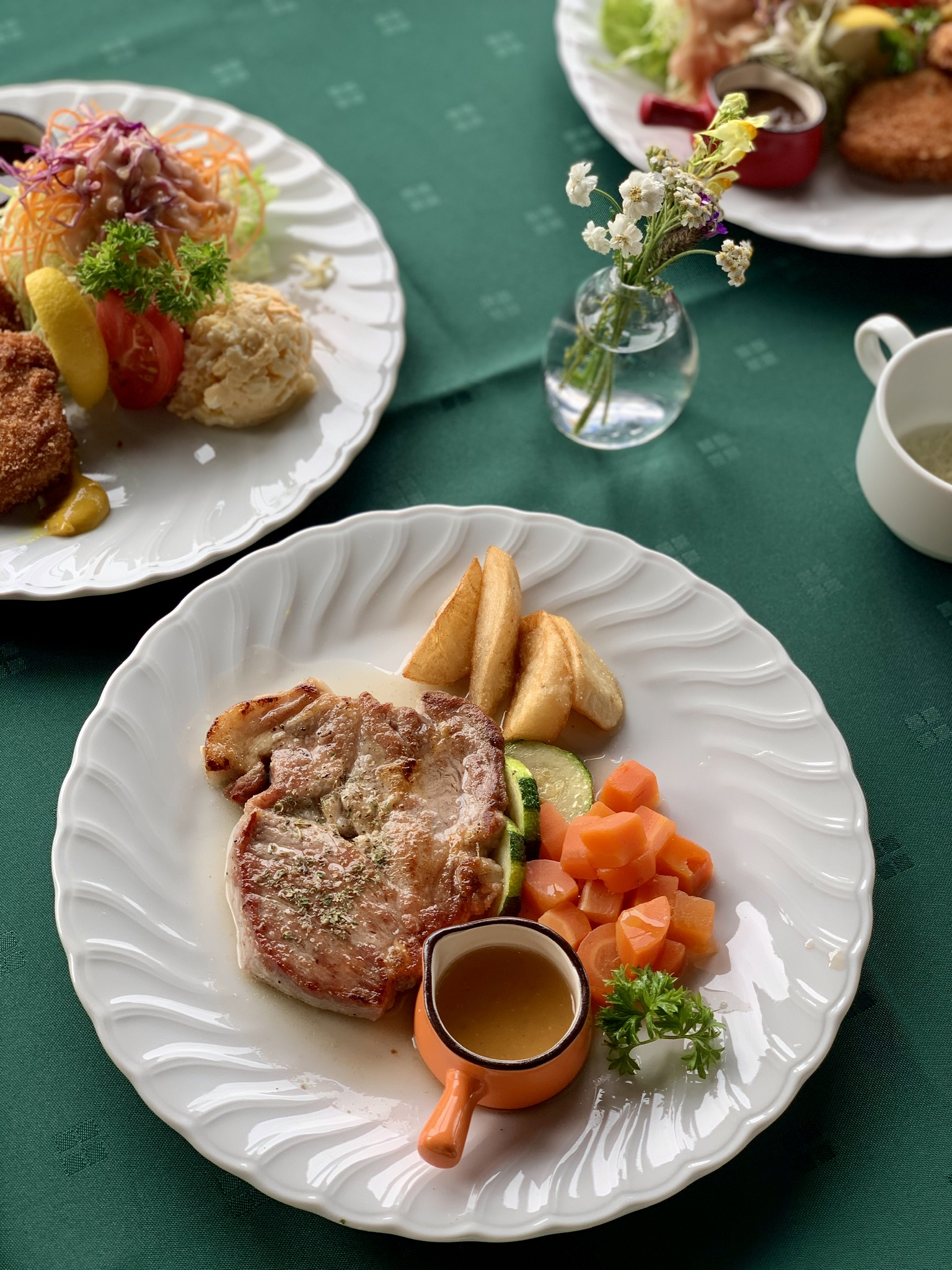 (Cooking: Sautéed Tategamori Kogen Pork, served with farm-grown seasonal vegetables)