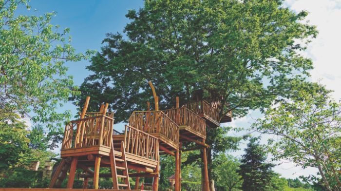 牧場内のツリーハウス「くくのち」の頂上からは牧場の景色だけでなく、 太陽の光、ガーデンからの風の香り、木々の囁を楽しんでいただけます。