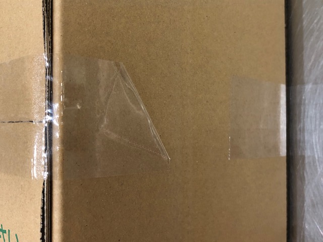 段ボールの封をする際はお客様が開梱しやすいようにテープの端を折り曲げて・・