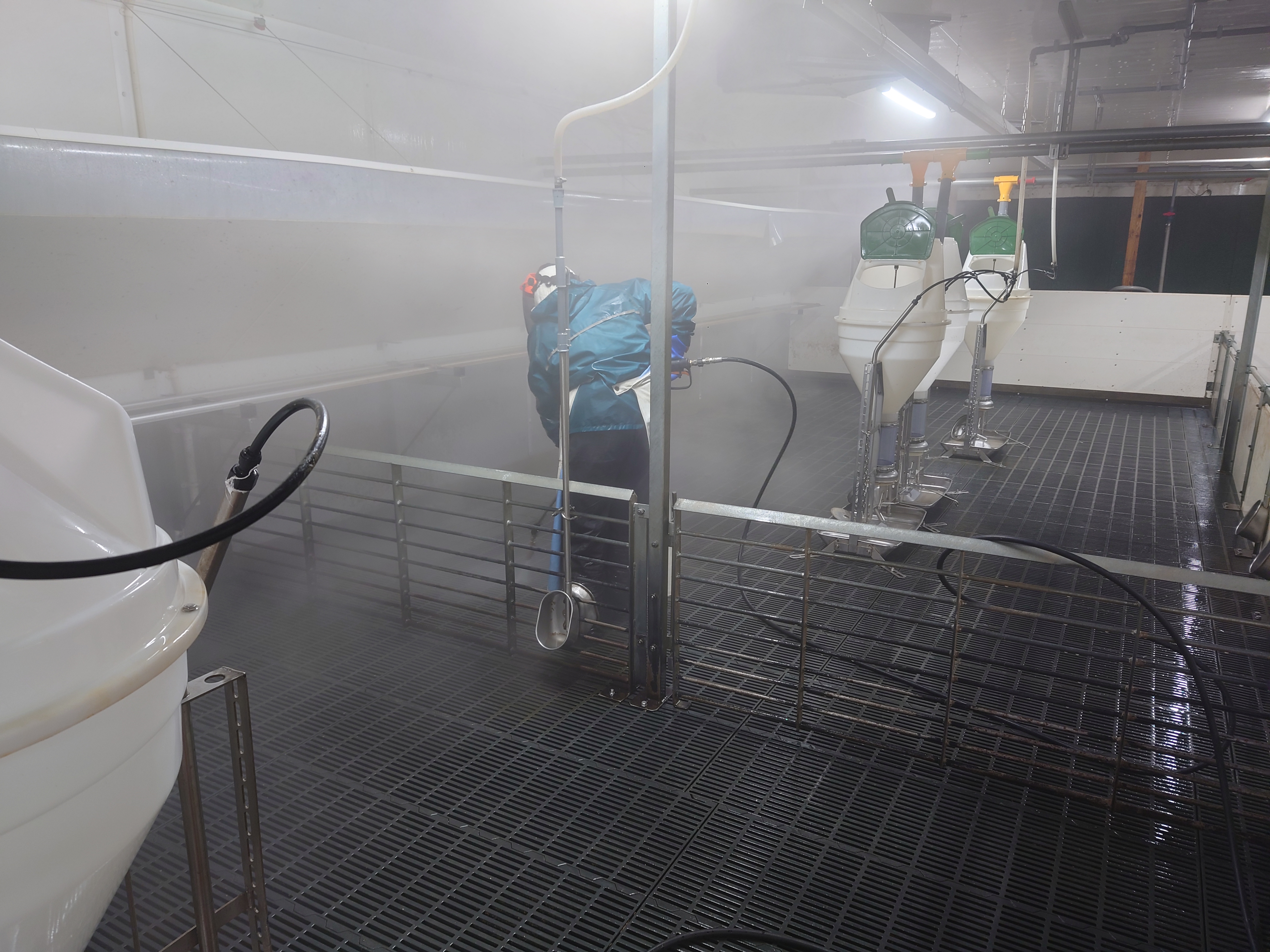 写真は女性キャストが高圧ホースを使い、隅々まで綺麗に