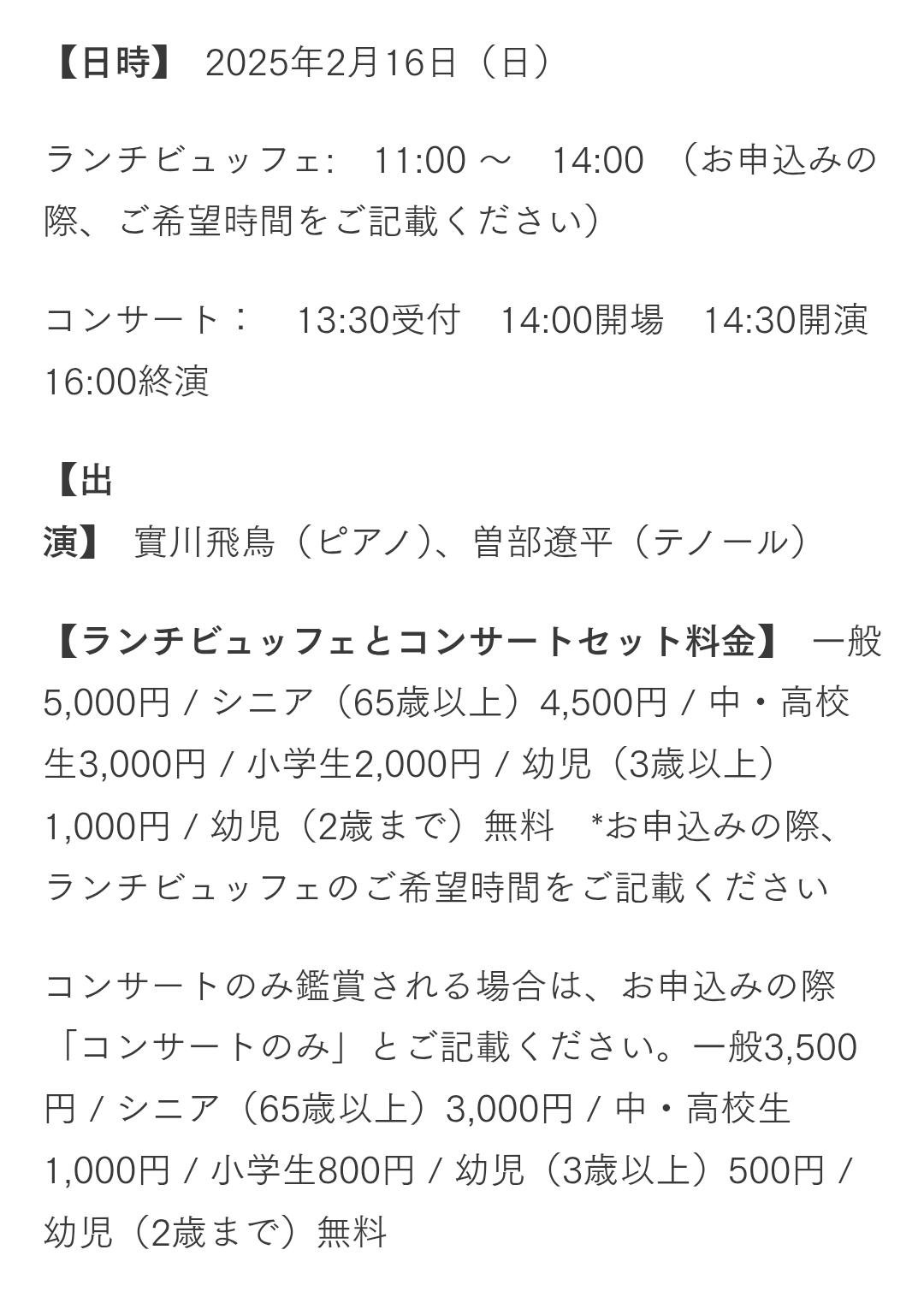 自然食レストランティルズのランチビュッフェをお楽しみいただき、親しみのある楽曲を世界レベルの演奏でご堪能下さい。
