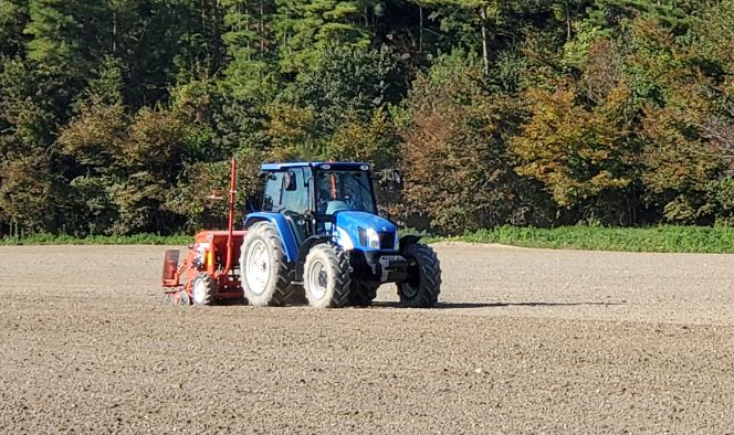 牧場では「ナンブコムギ」「銀河のちから」の2品種を栽培しており、先週には「銀河のちから」の播種を実施、来週には「ナンブコムギ」の播種が実施予定となっております。