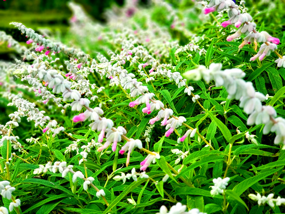 また、「薫る風のガーデン」内には、白と淡いピンクの可愛い品種のアメジストセージ “フェアリーピンク“(ピンクアメジスト)が咲いています。