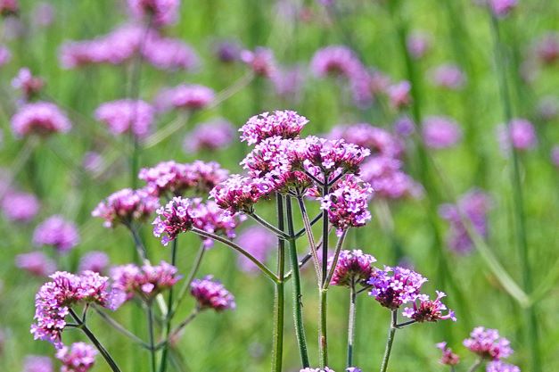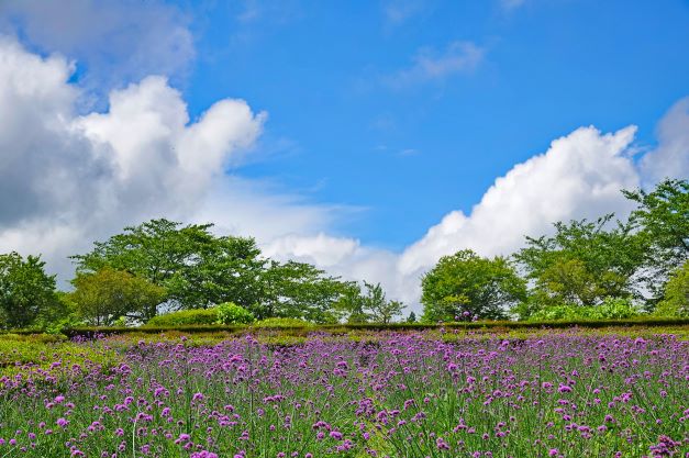 現在夢見ヶ丘ガーデンには三尺バーベナが、虹の丘ガーデンには4色の千日紅が満開を迎えています。