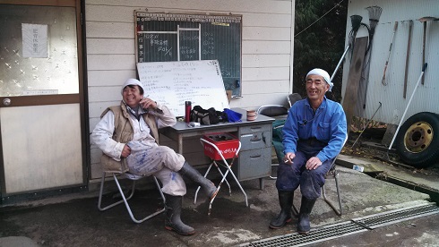 HACCP審査で藤沢農場に伺った際、営繕班のお2人の満面の笑顔が撮れました。