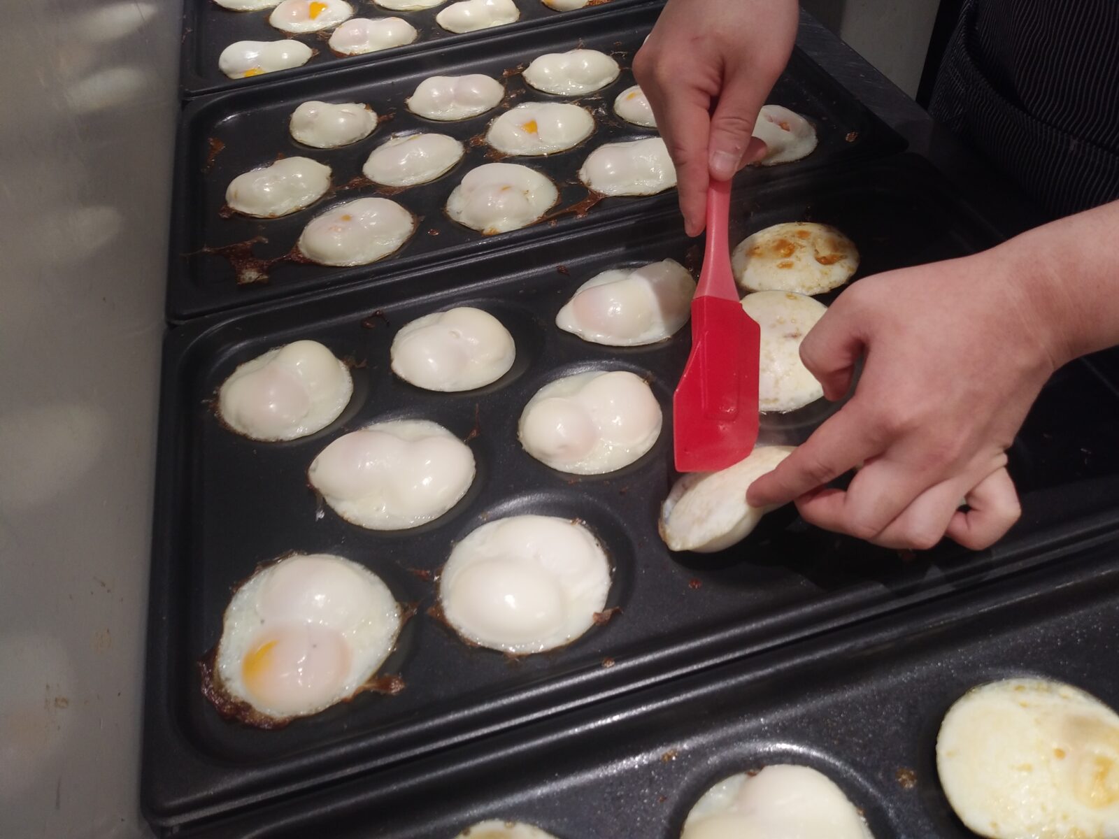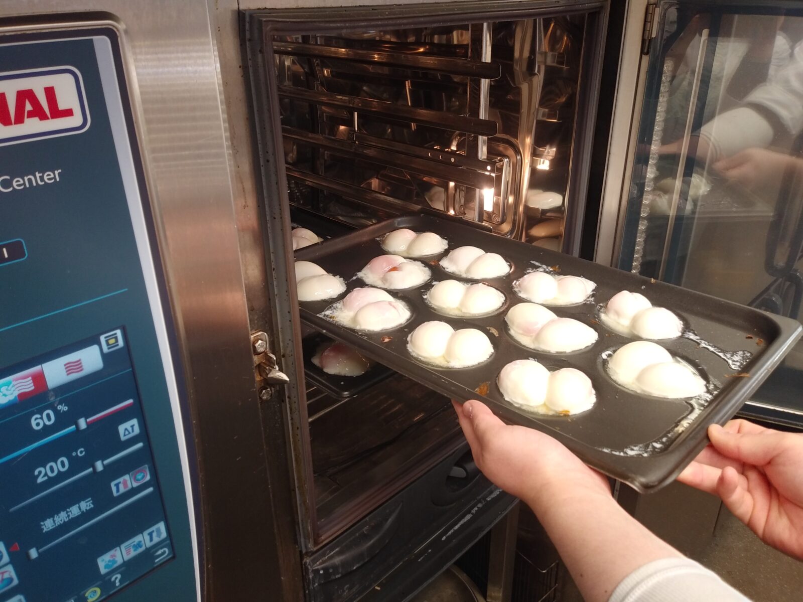 できたら、オーブンから出して温玉をひっくり返して余熱で表側を火入れします。