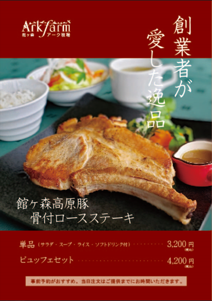 館ヶ森高原豚骨付きロースセットというメニューがございます。
