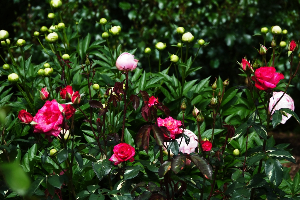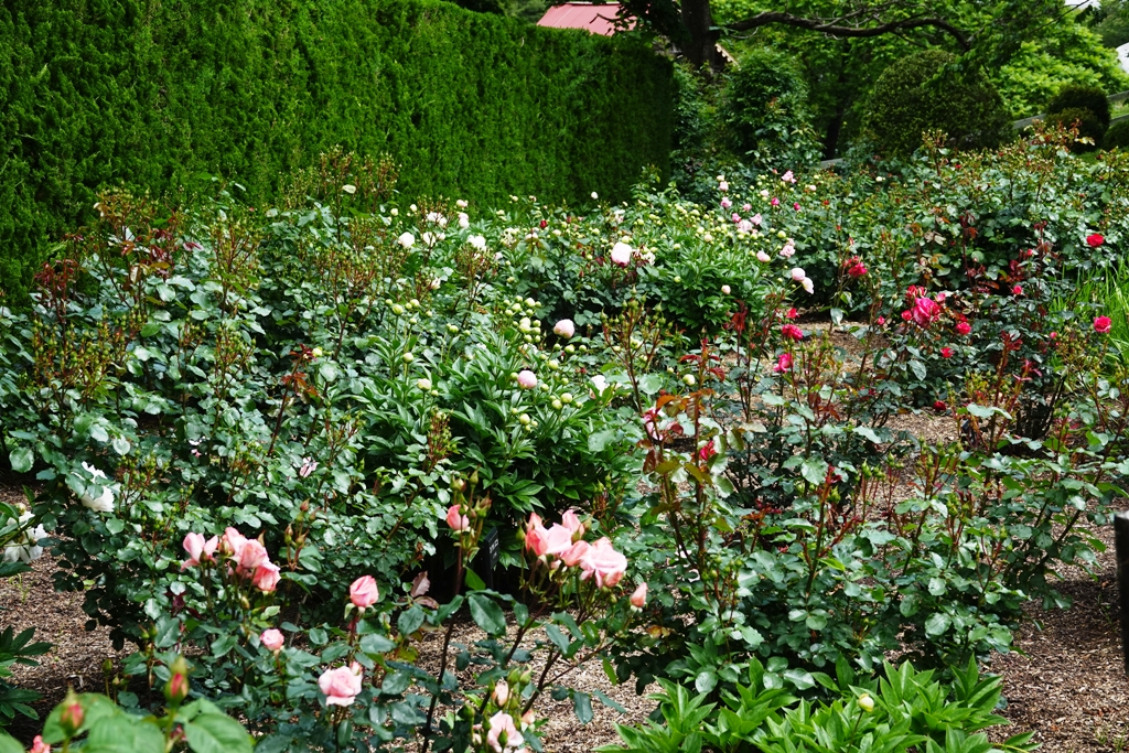 ローズガーデン内には、シャクヤク〈芍薬〉も混植されています。