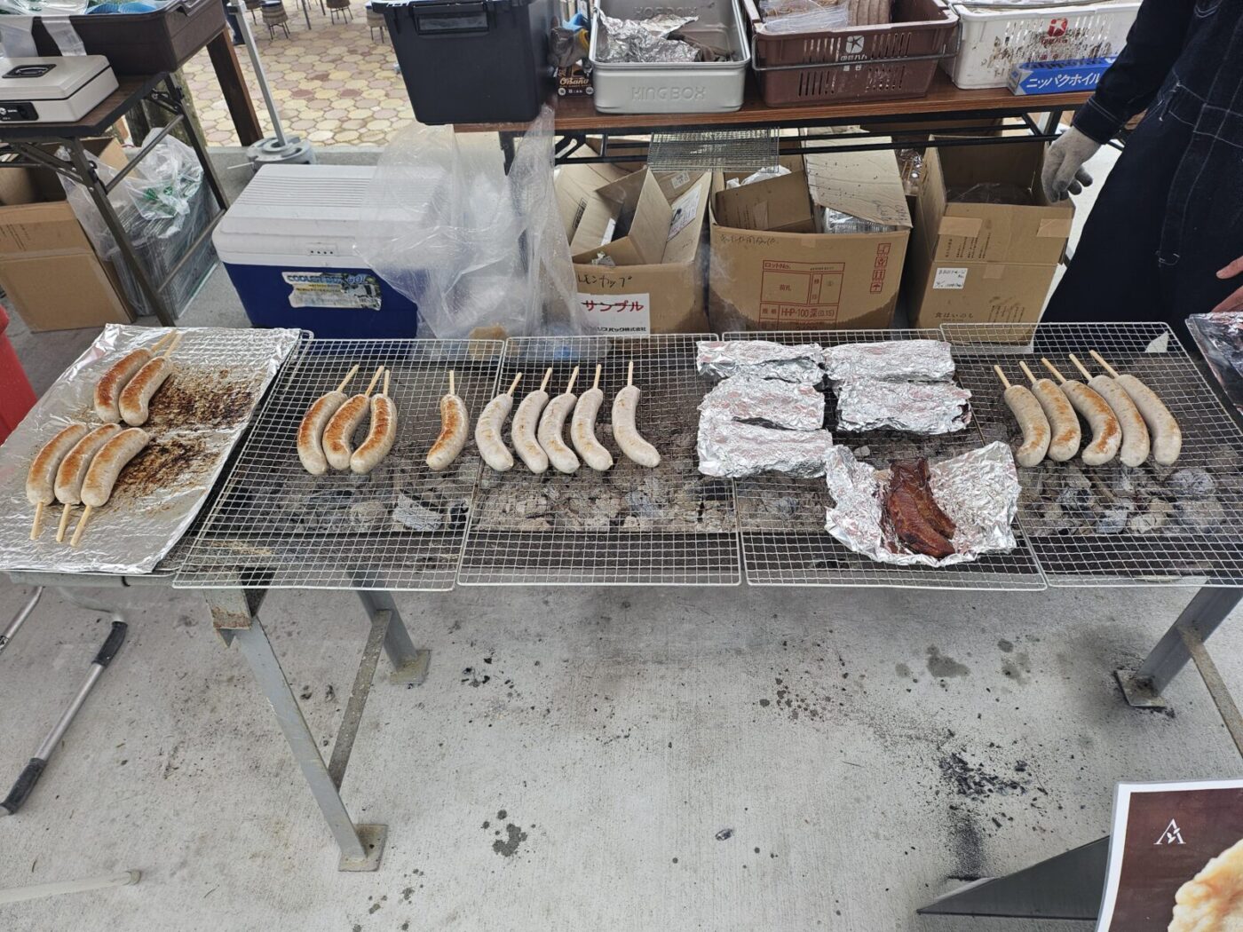 今年のファームマーケットでは新たな取り組みとして、ハム工房の出来立て生産品の販売やレストラン、ティルズで揚げた出来立てトンカツ試食販売、そしてなんといってもスベアリブやソーセージを扱った屋台を出店し、多くのお客様でにぎわって頂きました。