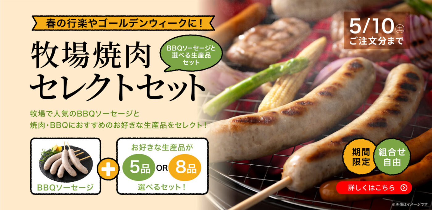 一緒に、BBQにおすすめの生産品を選べる「牧場焼肉セレクトセット」も