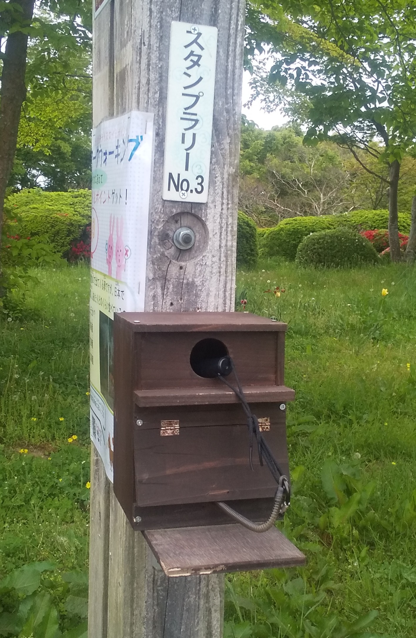 スタンプの置いてある台が、巣箱の様でかわいいですよ。
