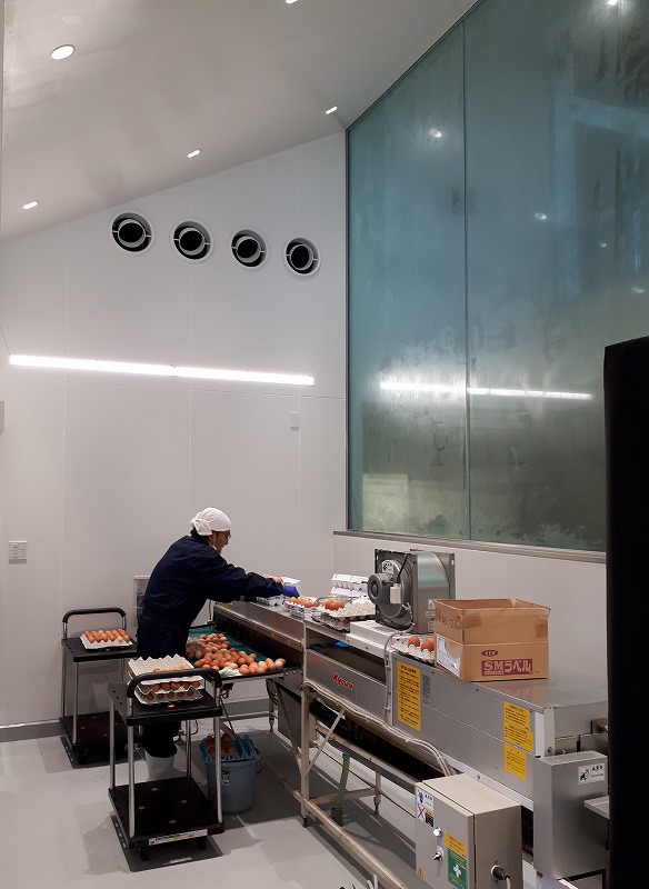 GPセンターとは養鶏場で生産された卵を受け入れ、洗浄し選別する施設のことです。