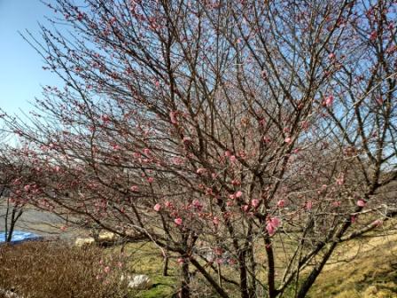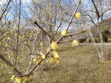 上がサンシュユの森にある蠟梅(ろうばい)、下が虹の丘付近にある紅梅(こうばい)です。