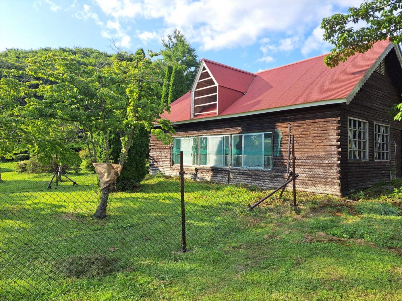 ↑わんぱく広場の赤い屋根の建物でヤギが飼育されています。