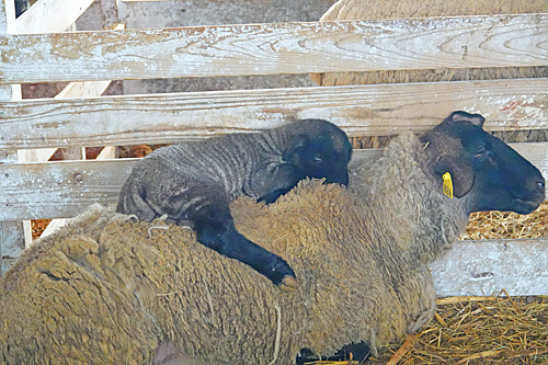 甘えん坊の仔羊がお母さん羊の背中におんぶするシーンが偶然撮影できました。