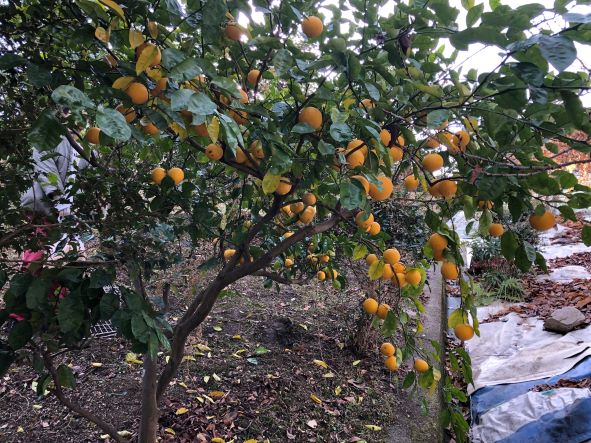 正直野放しなので育ててるとは言えませんが、土は自然のままで育った柑橘類です(土はフカフカです)。