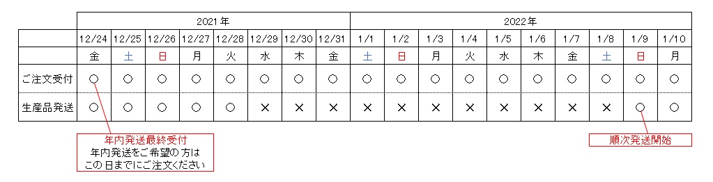 年内の発送をご希望の方は、12/24(金)までにご注文ください。