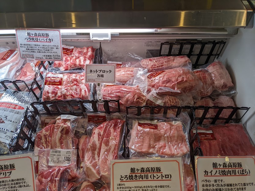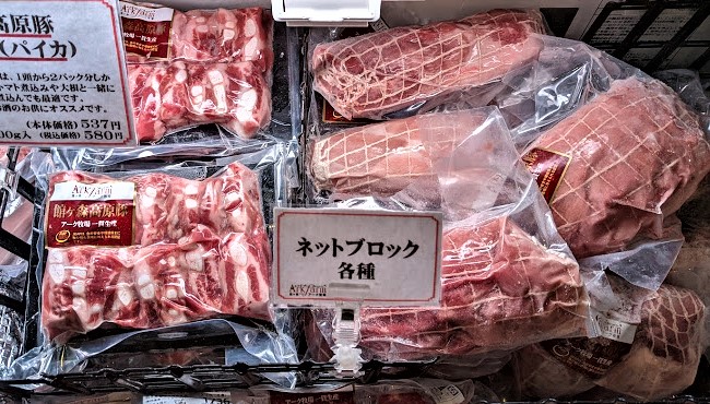 今日の館ヶ森ブログはこれからの季節に美味しい煮込料理食材『館ヶ森高原豚 パイカ(ばら軟骨)』について書こうと思いパイカを陳列している精肉冷凍ケースを覗き込んだら隣の『ネット巻ブロック』が盛々と揃えられておりました。
