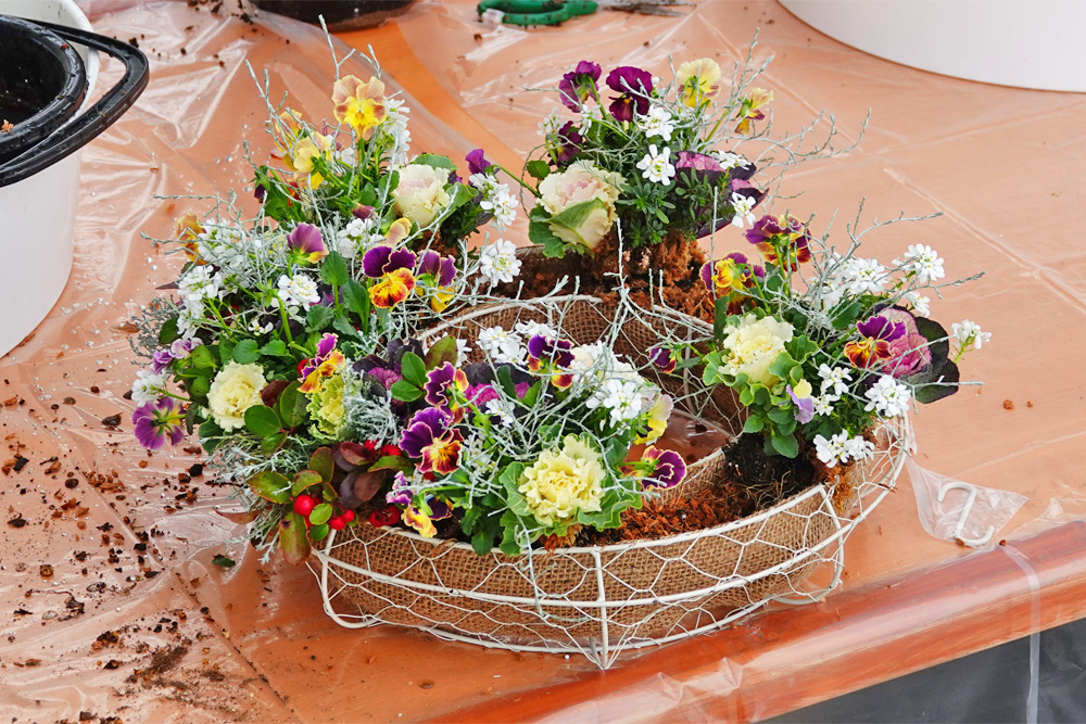 プランツギャザリングとは、作ったその時からキレイを楽しめる、根付きの花苗で作った花束のような寄せ植えのことです。