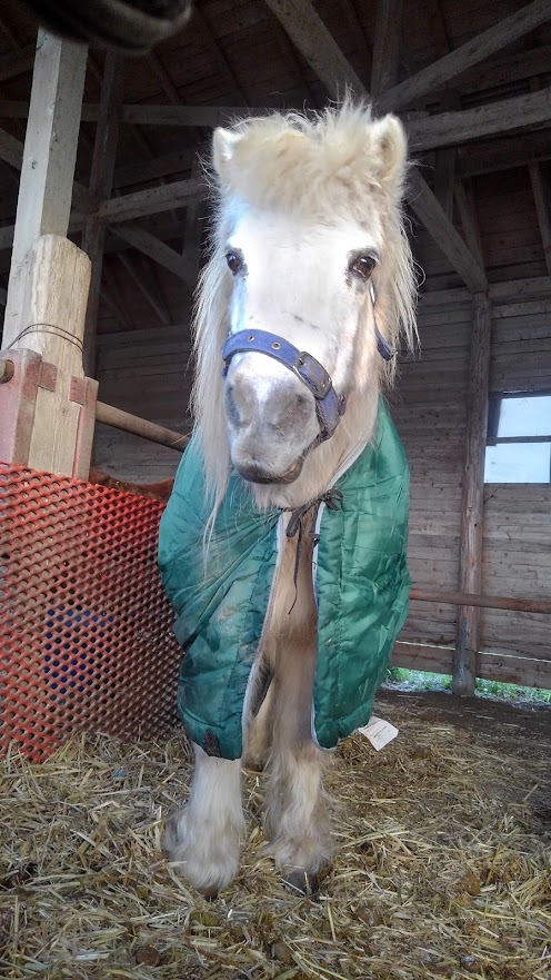 ポニーのユキちゃんは高齢で、寒さにより肢の関節を痛めてしまったため、