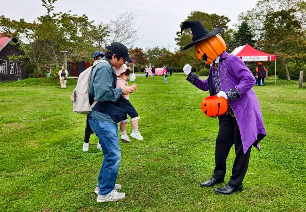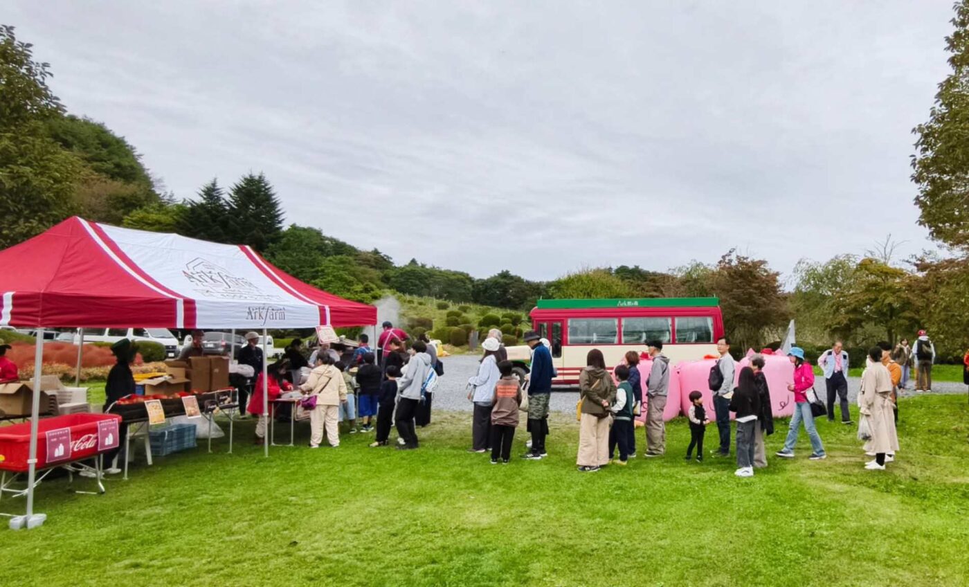 Ark館ヶ森の自慢の「館ヶ森高原豚を使った豚汁」が一杯200円でふるまわれ、仮装したしたスタッフと