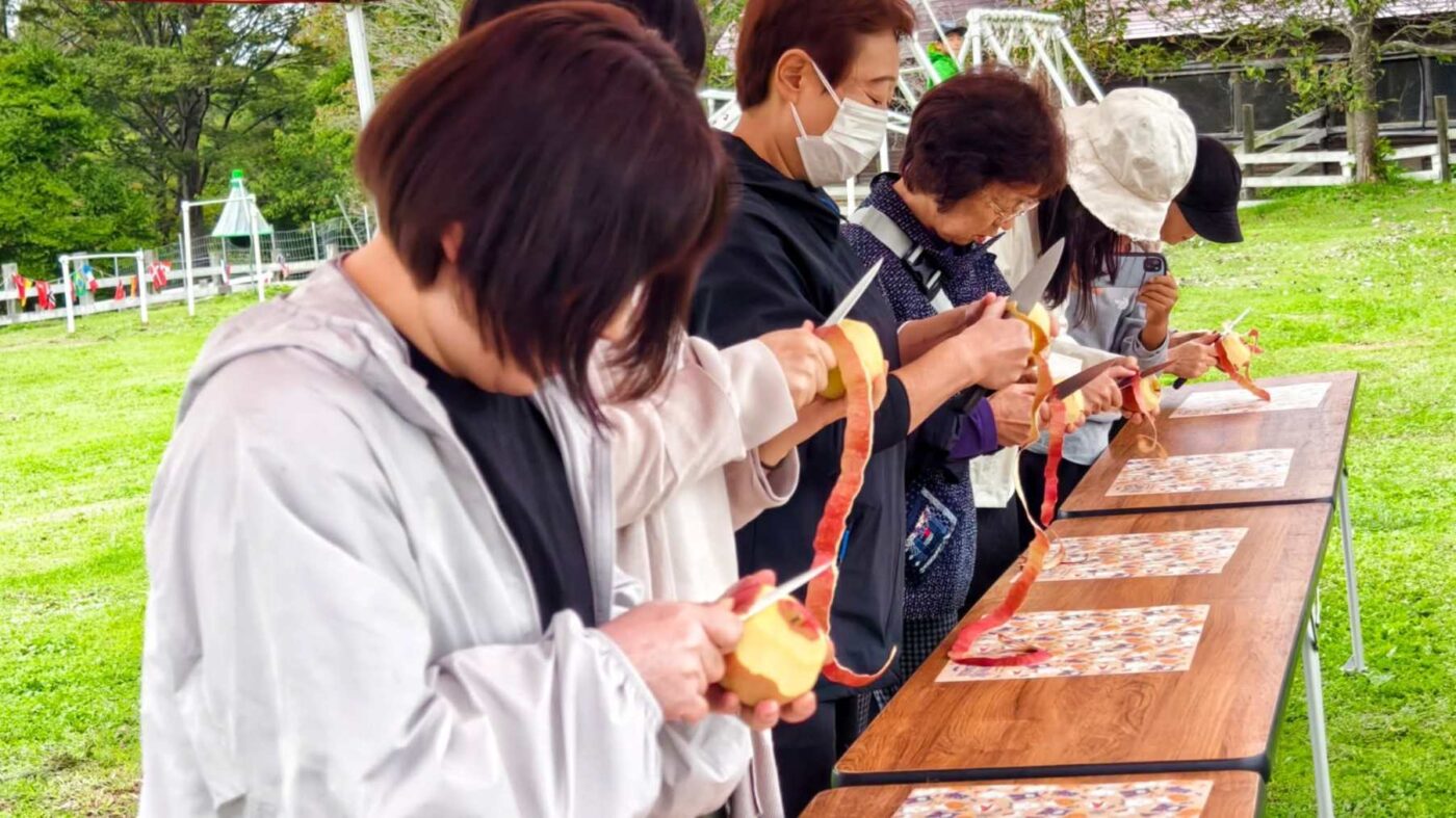 「リンゴの皮むき大会」・「めぇ~めぇ~ダービー」・「たまごDEびんご」が行われました。