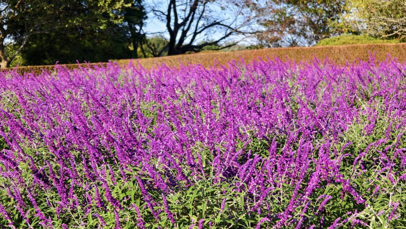 そして夢見ヶ丘ガーデンでは、深い紫色のアメジストセージが穂を伸ばし、まるで秋の空気を包み込むように穏やかな彩りを添えています。