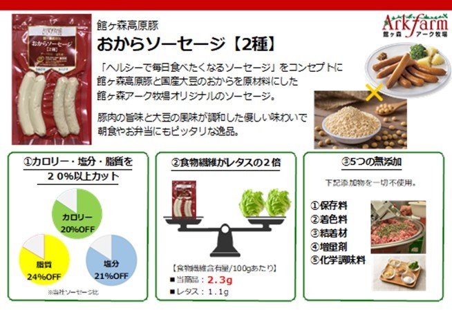 館ヶ森アーク牧場の新商品といえば、「おからソーセージ【2種】」。