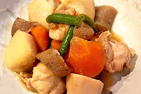 鶏肉、人参、玉コンと一緒に炊いた「二子さといも」の煮っころがしなんかはいかがですか?