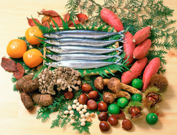 秋刀魚にカツオ、梨、柿、ぶどう。秋茄子、里芋、きのこ類。