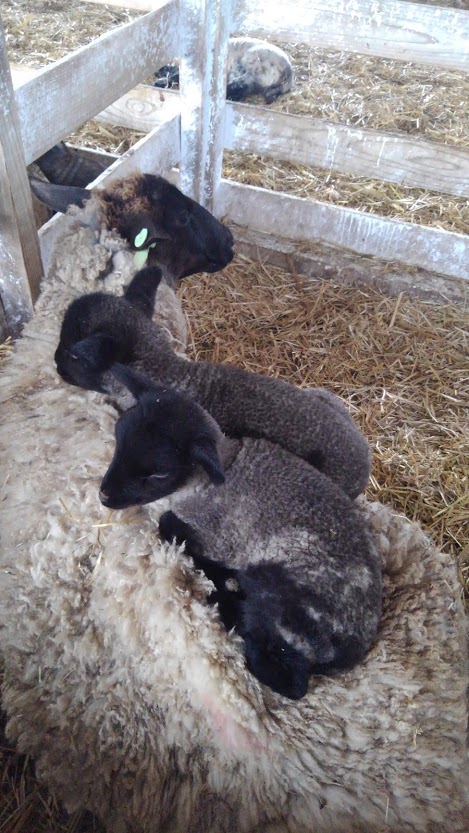 ↑お母さんヒツジをベッドにする双子の図(2021年2月)