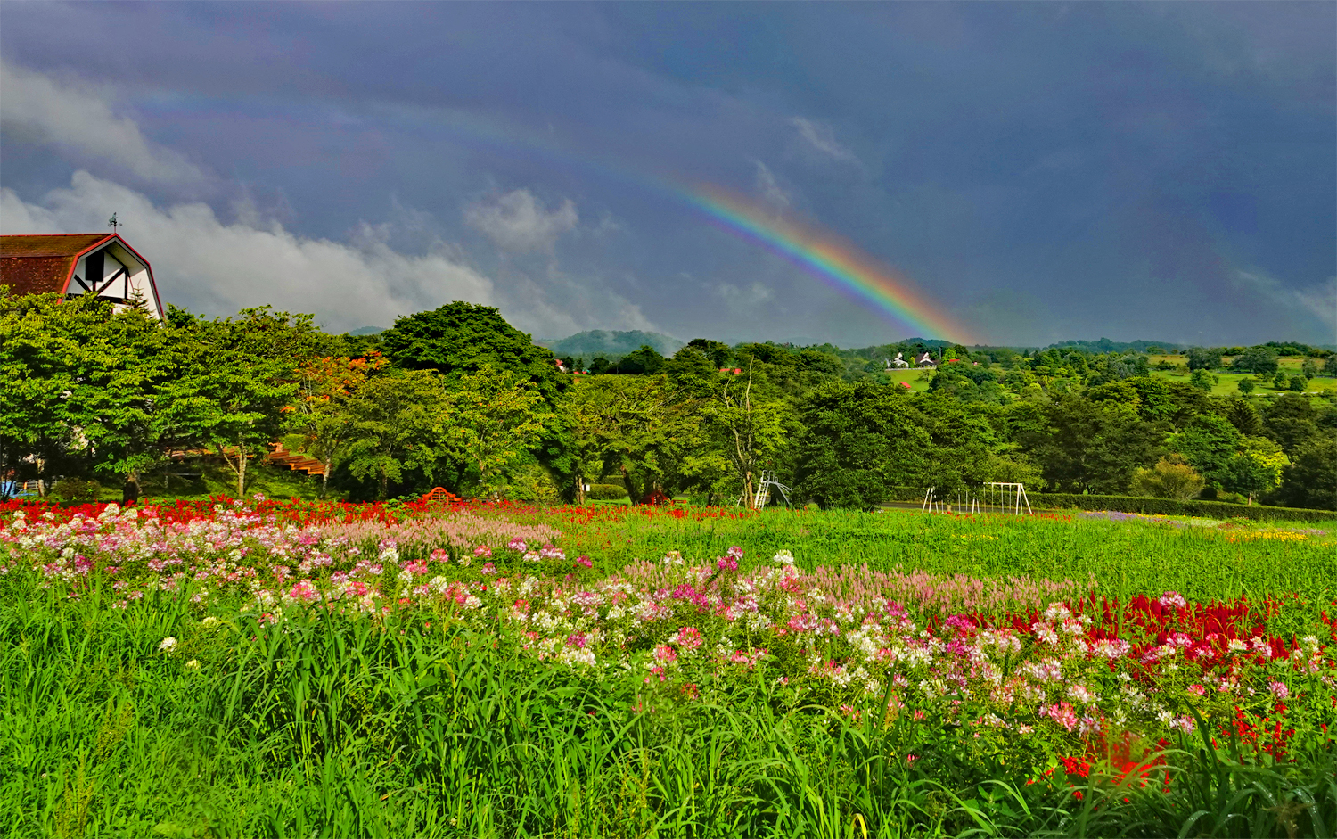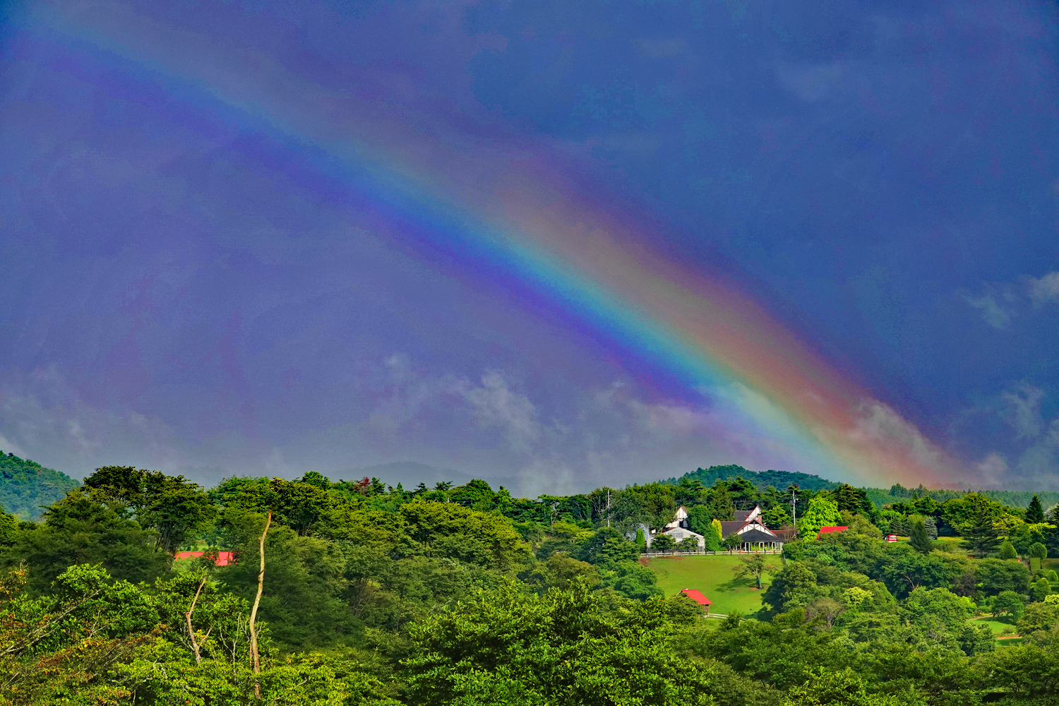 夕方 思いがけず 虹の丘ガーデンより「虹」を撮影することができました