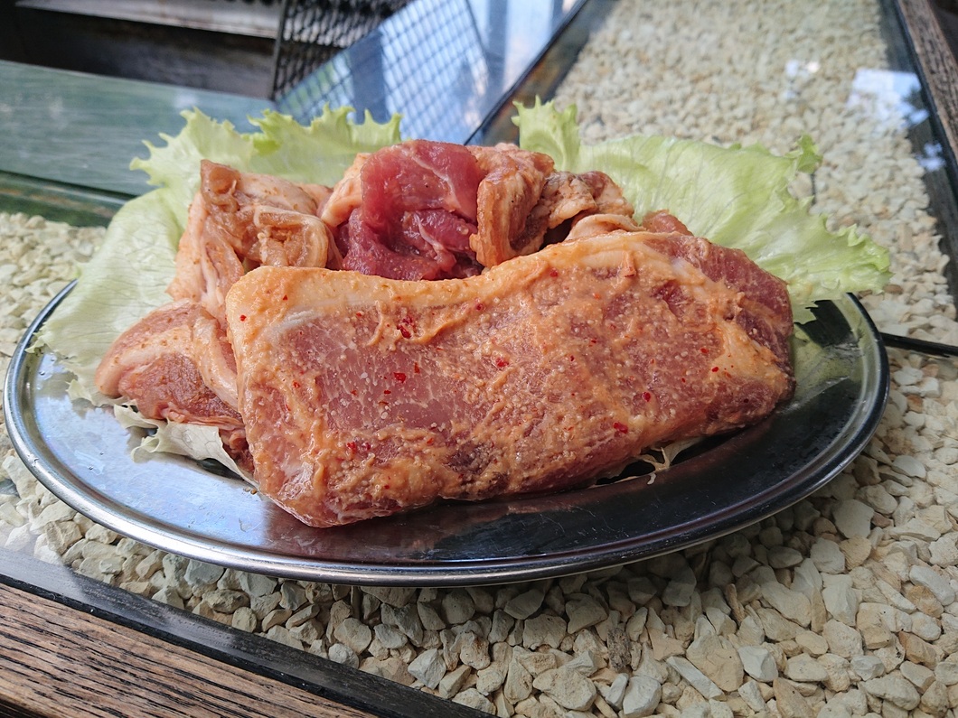 (みそ漬けの豚肉 1枚 +焼肉のたれに漬け込んだ豚肉)