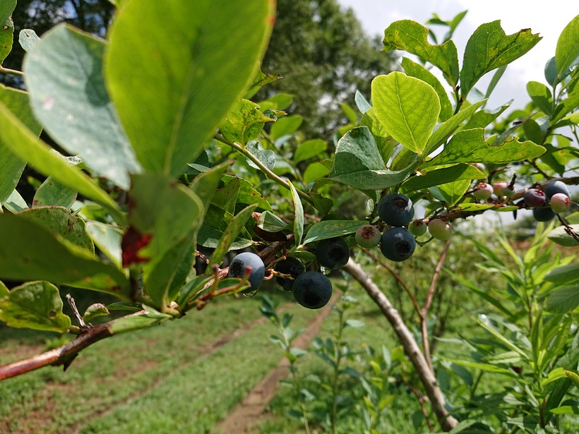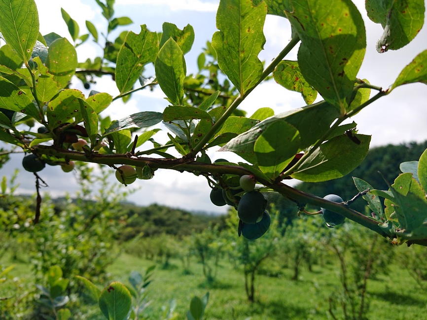 向かい側に、ブルーベリー畑があり、ブルーベリーの実がみのってました。