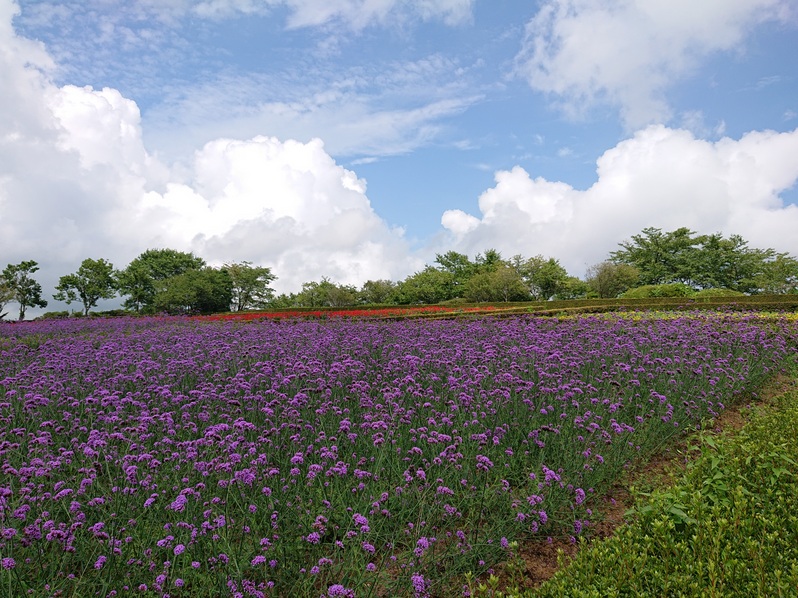 夢見が丘ガーデンの三尺バーベナがとても綺麗です。 黄色い花は、マリーゴールド!
