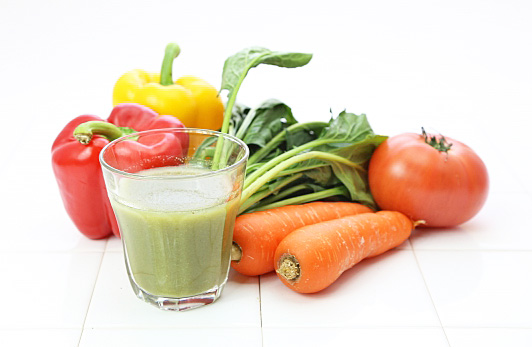 もう一品は夏野菜のスムージーです。野菜の種類は特定せず、その日その時ある野菜で大丈夫です。作り方は、その時々の野菜とハチミツ、レモン汁、館ヶ森特産のリンゴジュースで味を整えジューサーでミックスして頂きます。