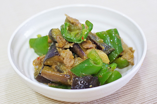 さてさて、三品目は茄子とピーマンの味噌炒め、誰でも知っている夏の定番。