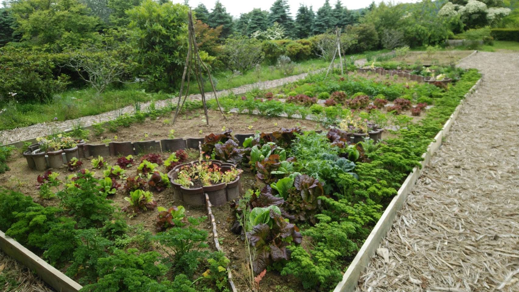 今年の春先にポタジェの全面改装を行い、牧場に眠っていた大正瓦で仕切りをつけるなどしてお洒落に生まれ変わりました。