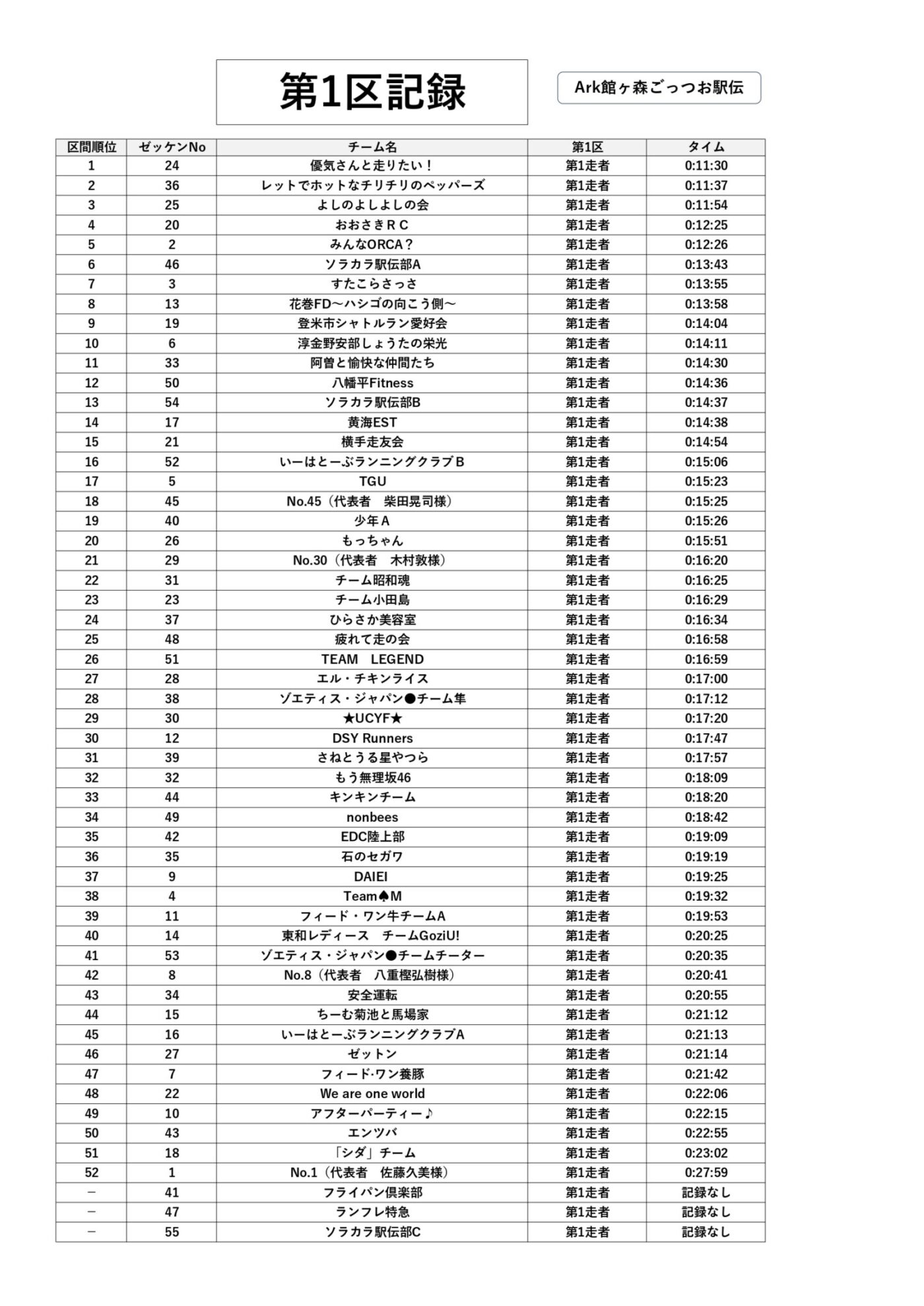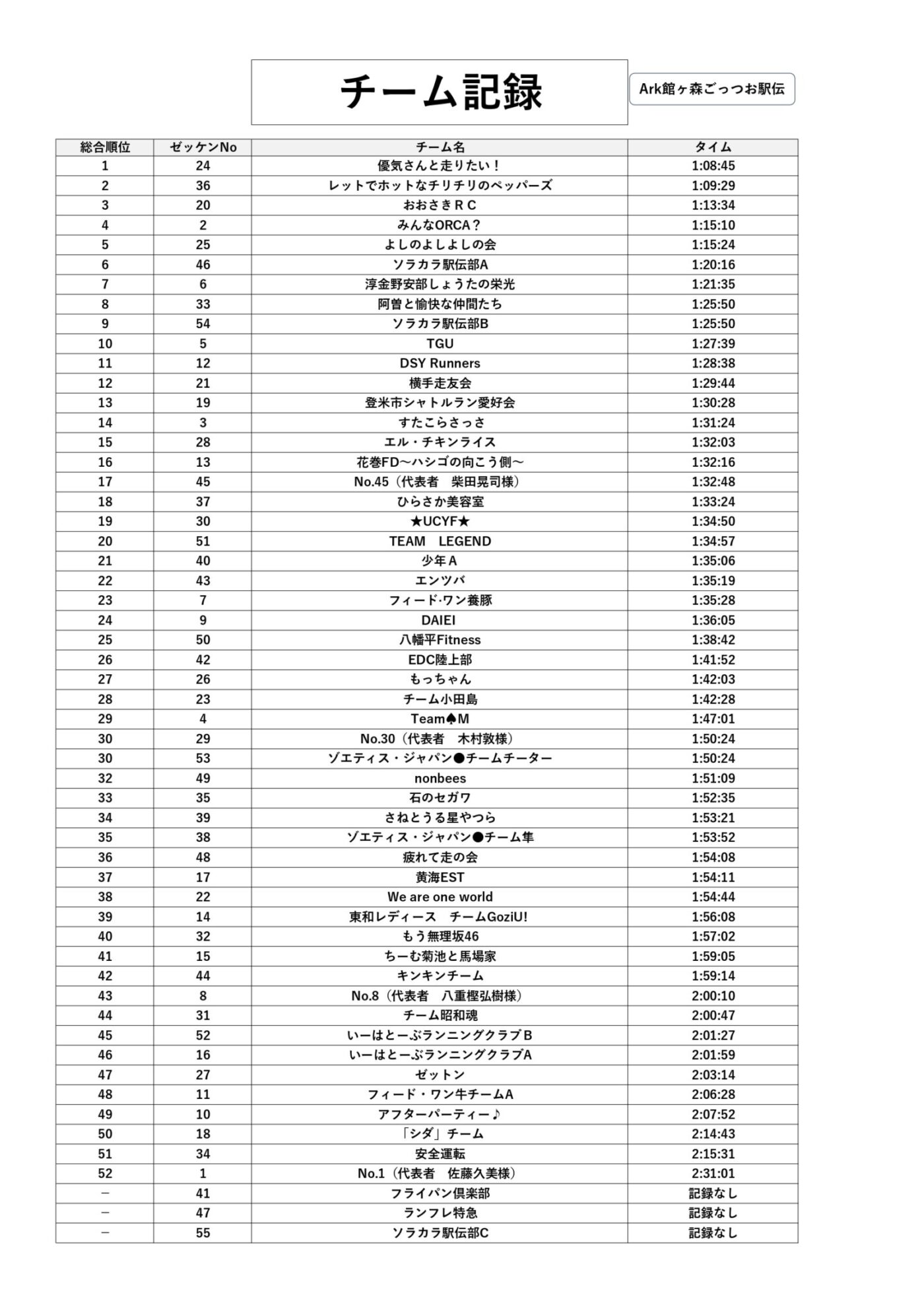 ■第2回Ark館ヶ森ごっつお駅伝リザルト
