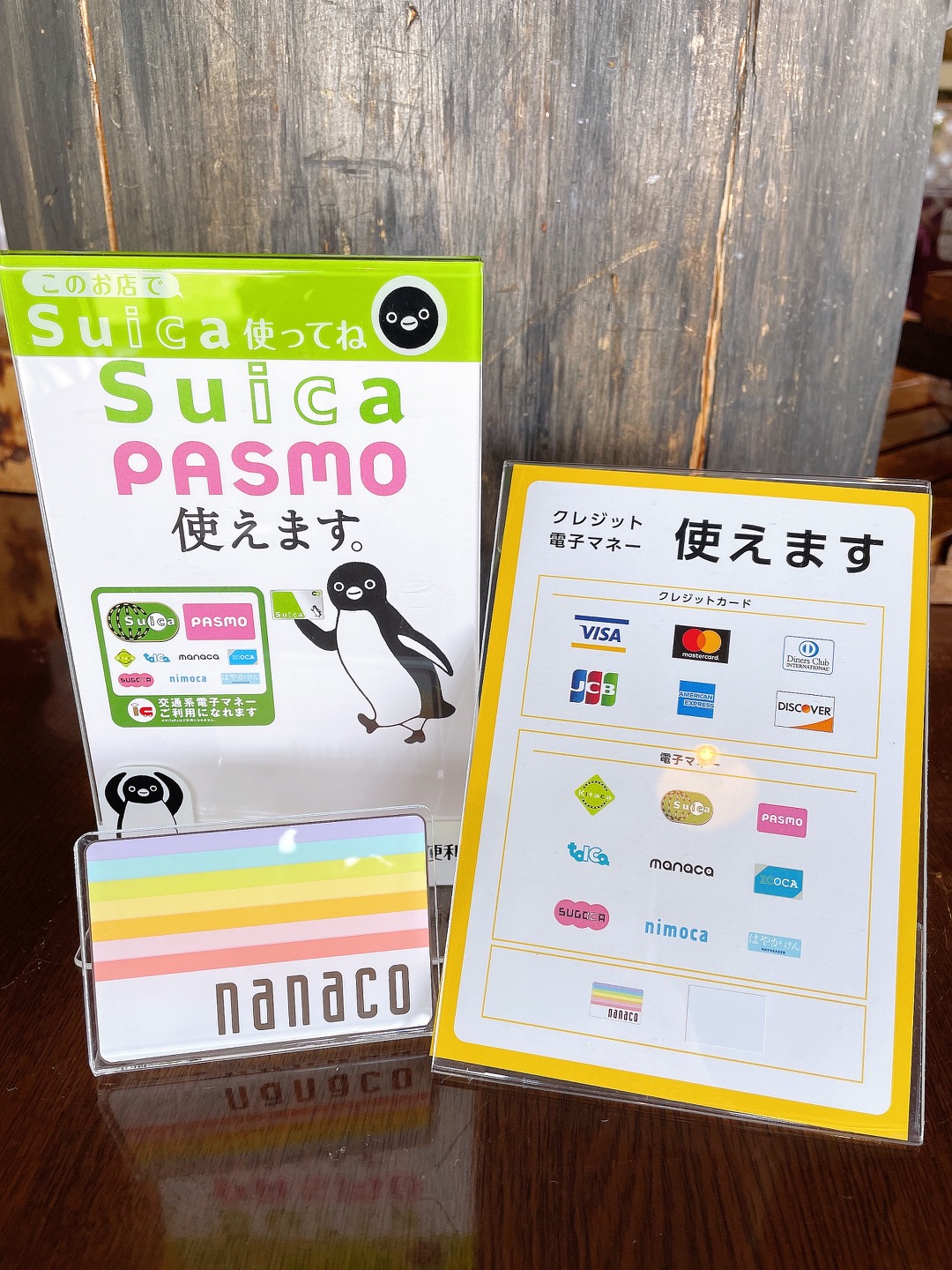 Suicaなどの交通系ICやセブンイレブンでもご利用いただけるnanacoなど、支払いの幅がぐんっと広がりました。