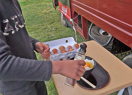 たまごひろい料金所の隣のキッチンカーでライスを購入すると、採れたての卵でたまごかけごはんを食べることができます!