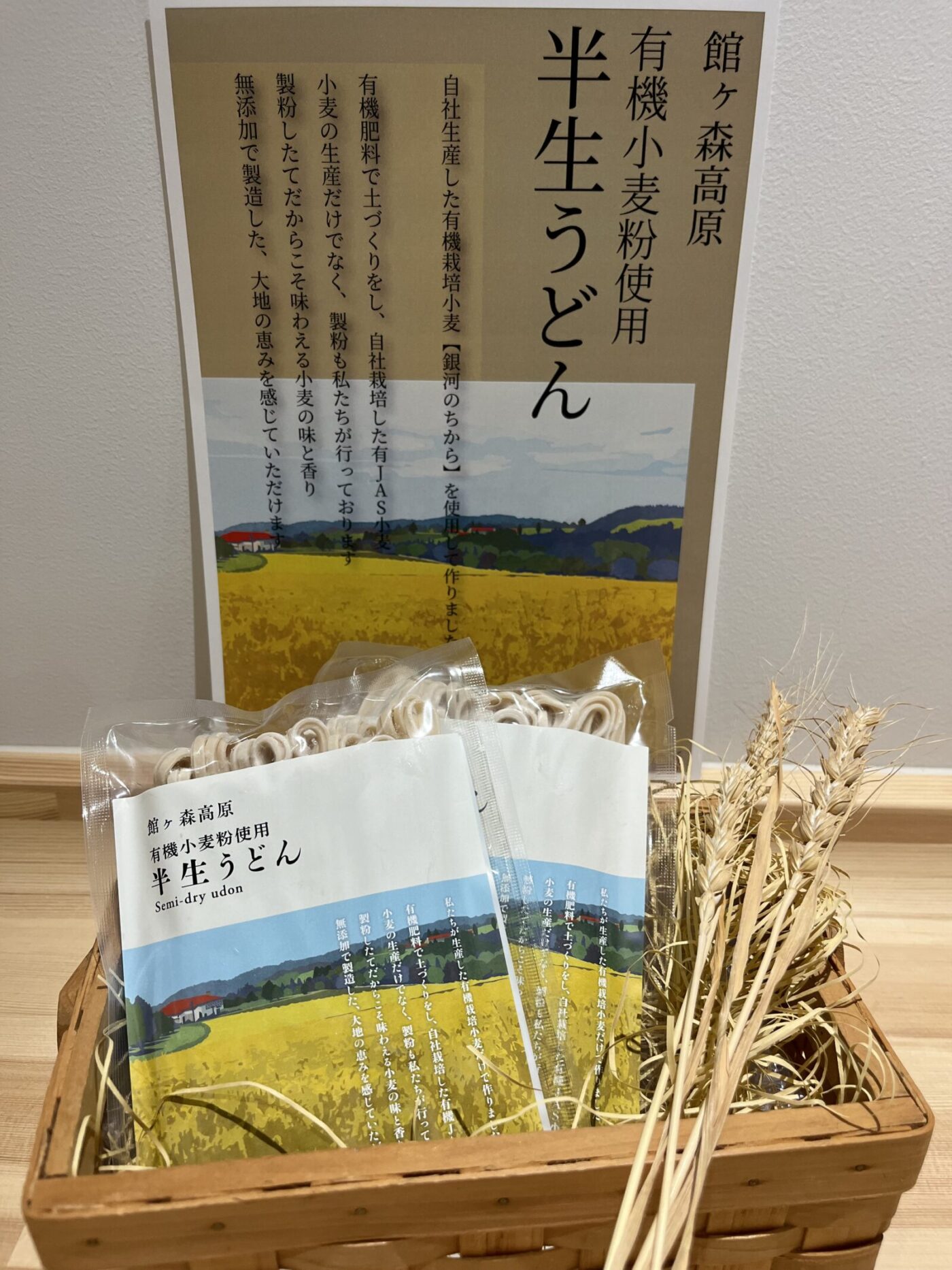そして、ファームマーケットでは同日より、新商品「館ヶ森高原 有機小麦粉使用 半生うどん」を販売いたします!