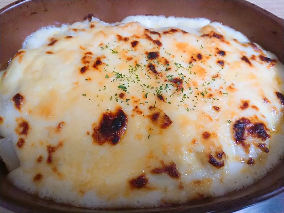 牧場産の季節野菜と生クリームを使用したホワイトソース、仕上げにチーズをたっぷりトッピングしています。