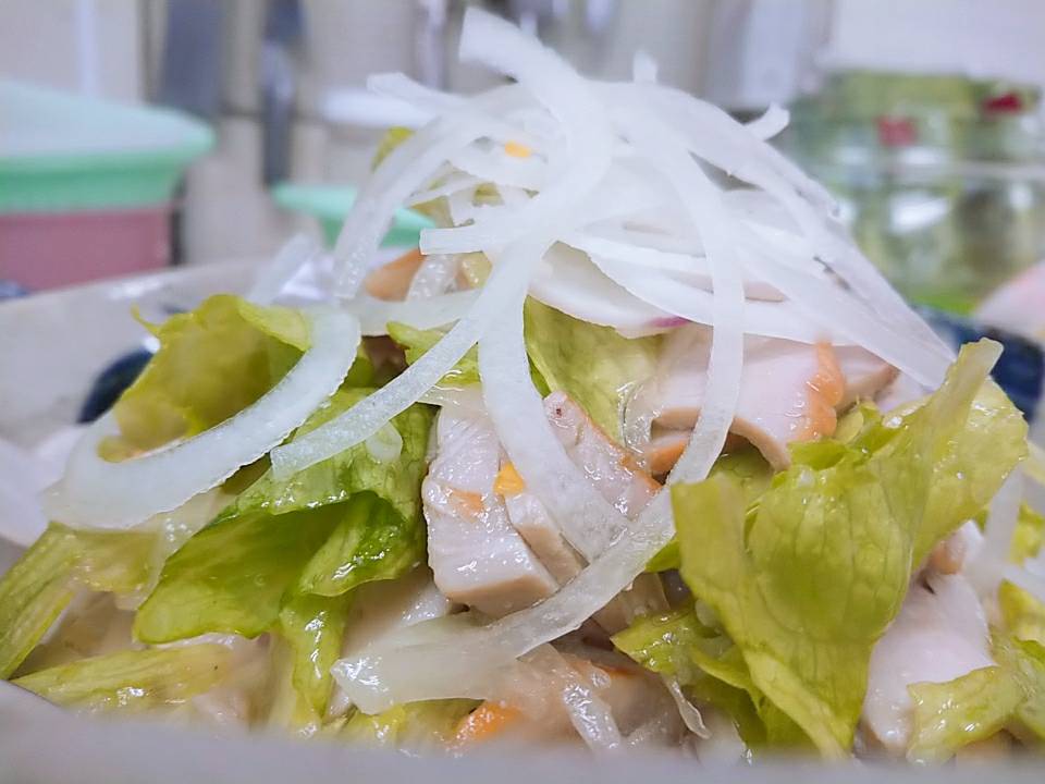 当社の切り落としロースハムにたっぷりの野菜と特製イタリアンドレッシングで味付けをしています。