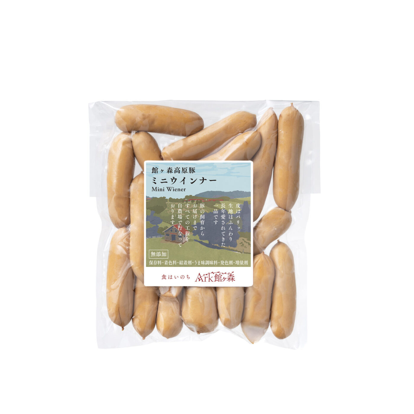 裏ラベルを見てください。Ark館ヶ森のミニウィンナーは原材料がたったの5つなんです。