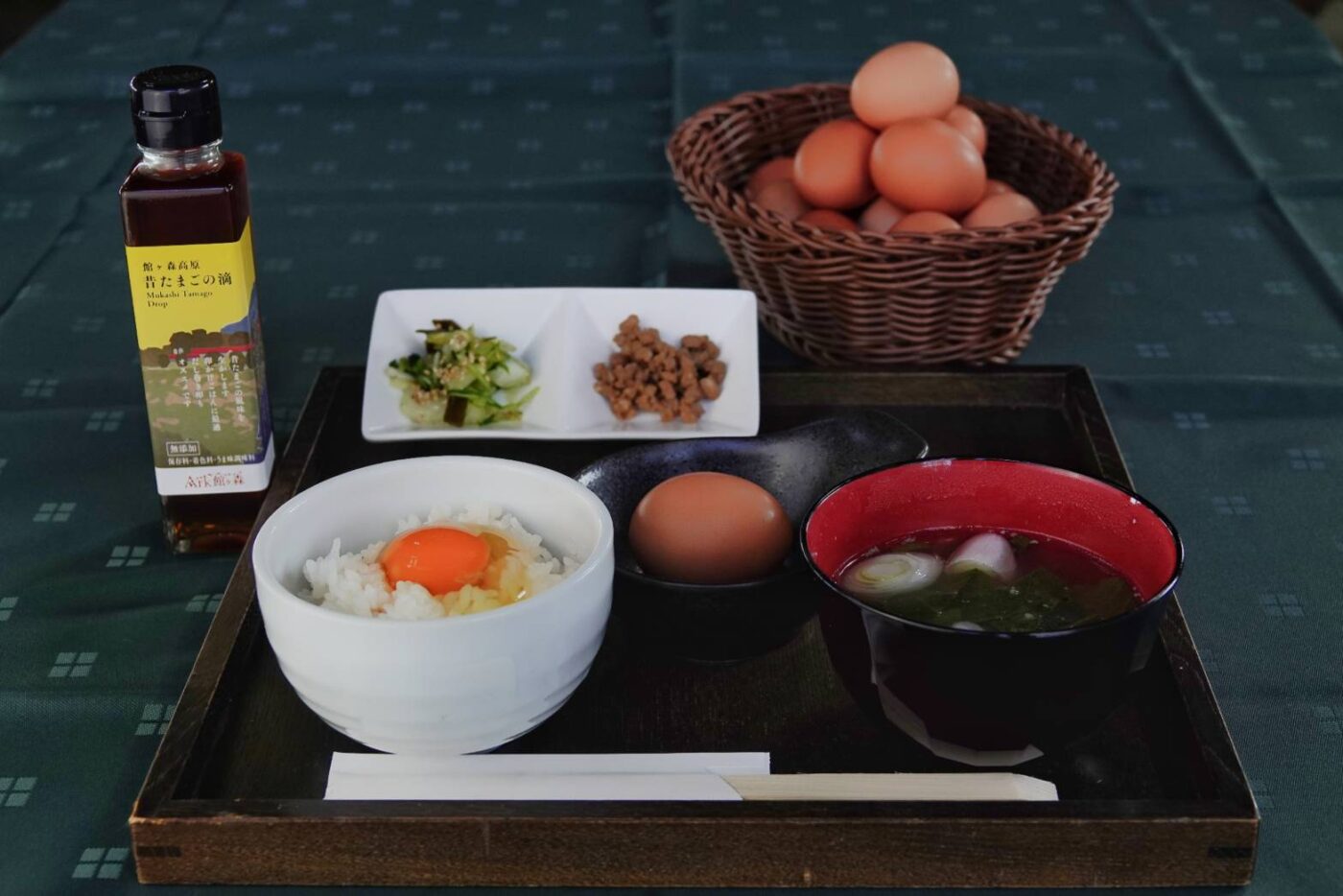 たまごの学校で収穫したたまごは、併設の「虹の丘ビューテラス」にて、たまごかけご飯としてすぐにお召し上がりいただけます。